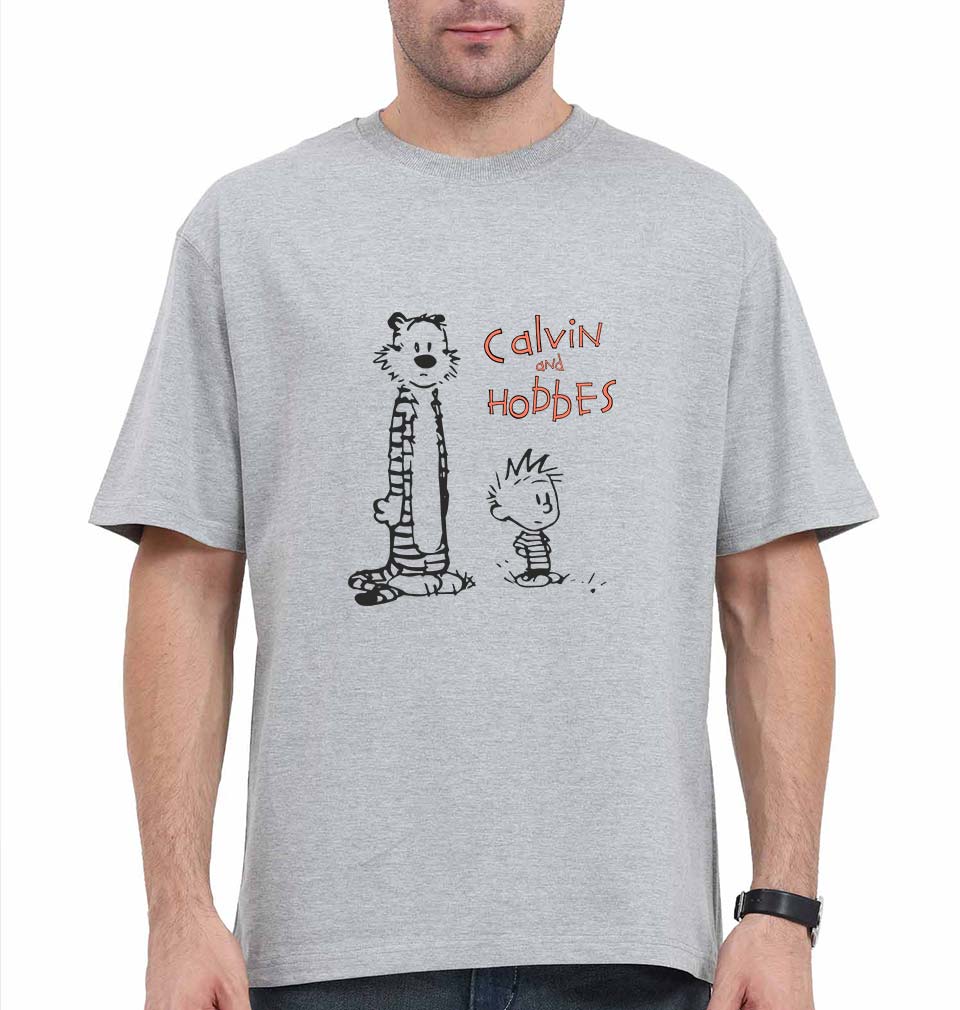 calvin hobbes Oversized T-Shirt for Men-Grey-Ektarfa.online