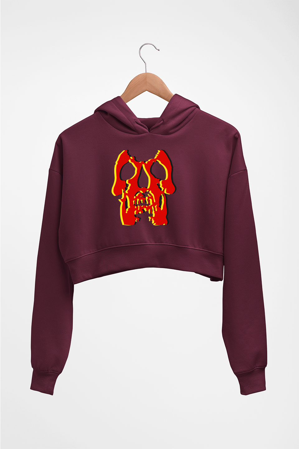 Deftones Skull Crop HOODIE FOR WOMEN-Maroon-Ektarfa.online