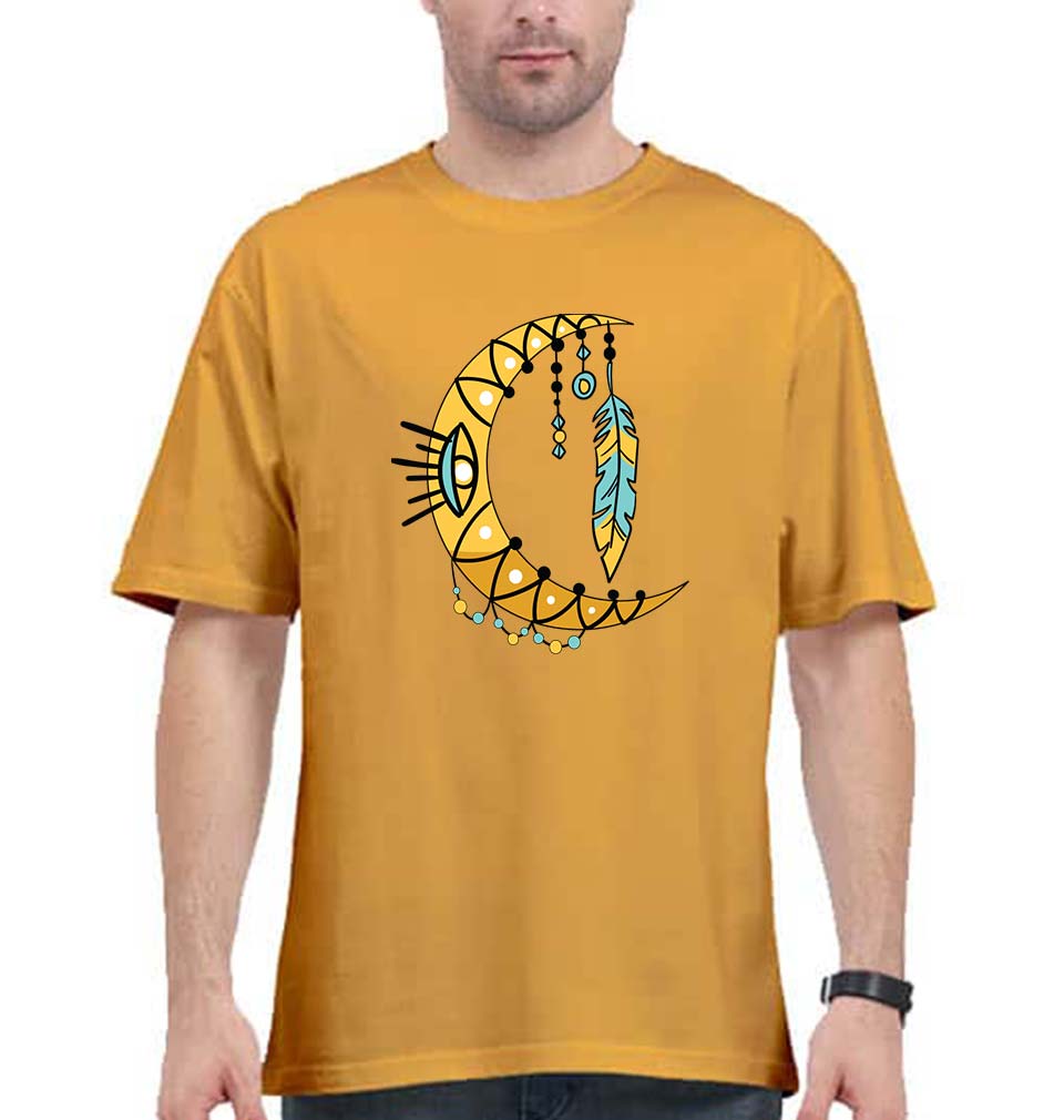 Dream Catcher Moon Oversized T-Shirt for Men-Golden Yellow-Ektarfa.online