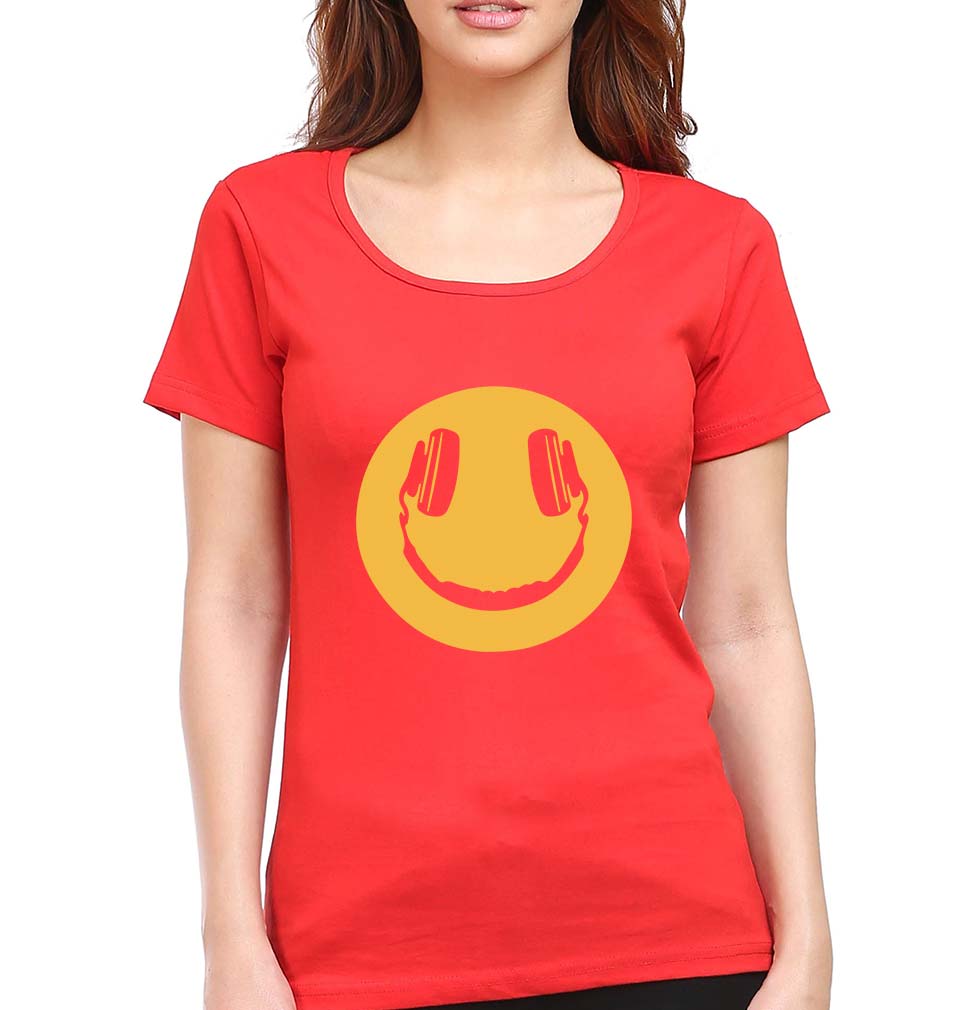 Emoji Headphone Music T-Shirt for Women-Red-Ektarfa.online
