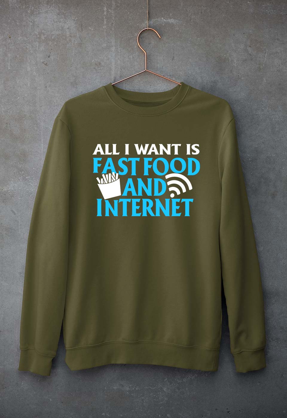 Fast Food and Internet Unisex Sweatshirt for Men/Women-Olive Green-Ektarfa.online