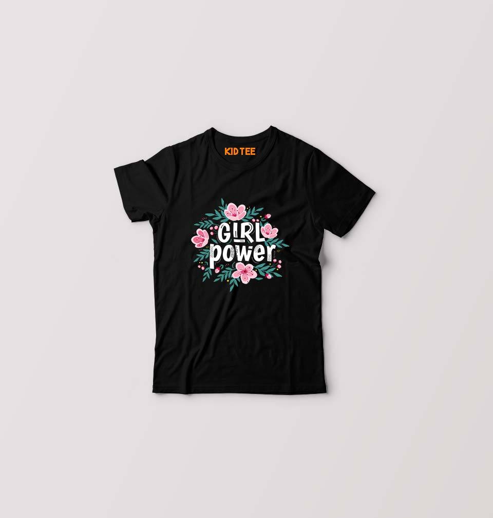 Feminist Girl Power Kids T-Shirt for Boy/Girl-Black-Ektarfa.online