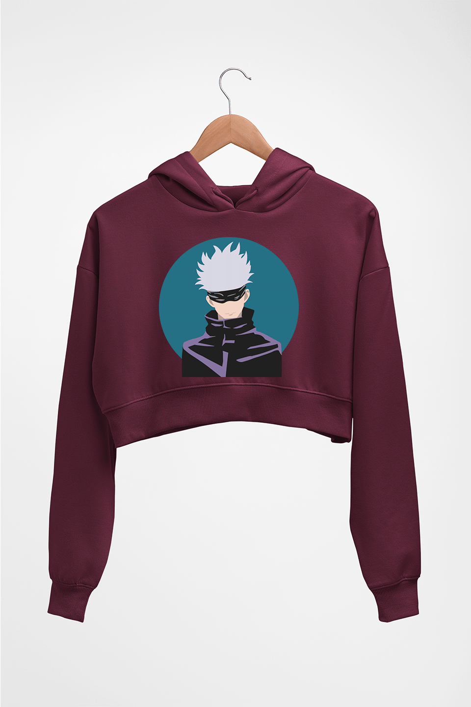 Gojo Satoru Anime Crop HOODIE FOR WOMEN-Maroon-Ektarfa.online