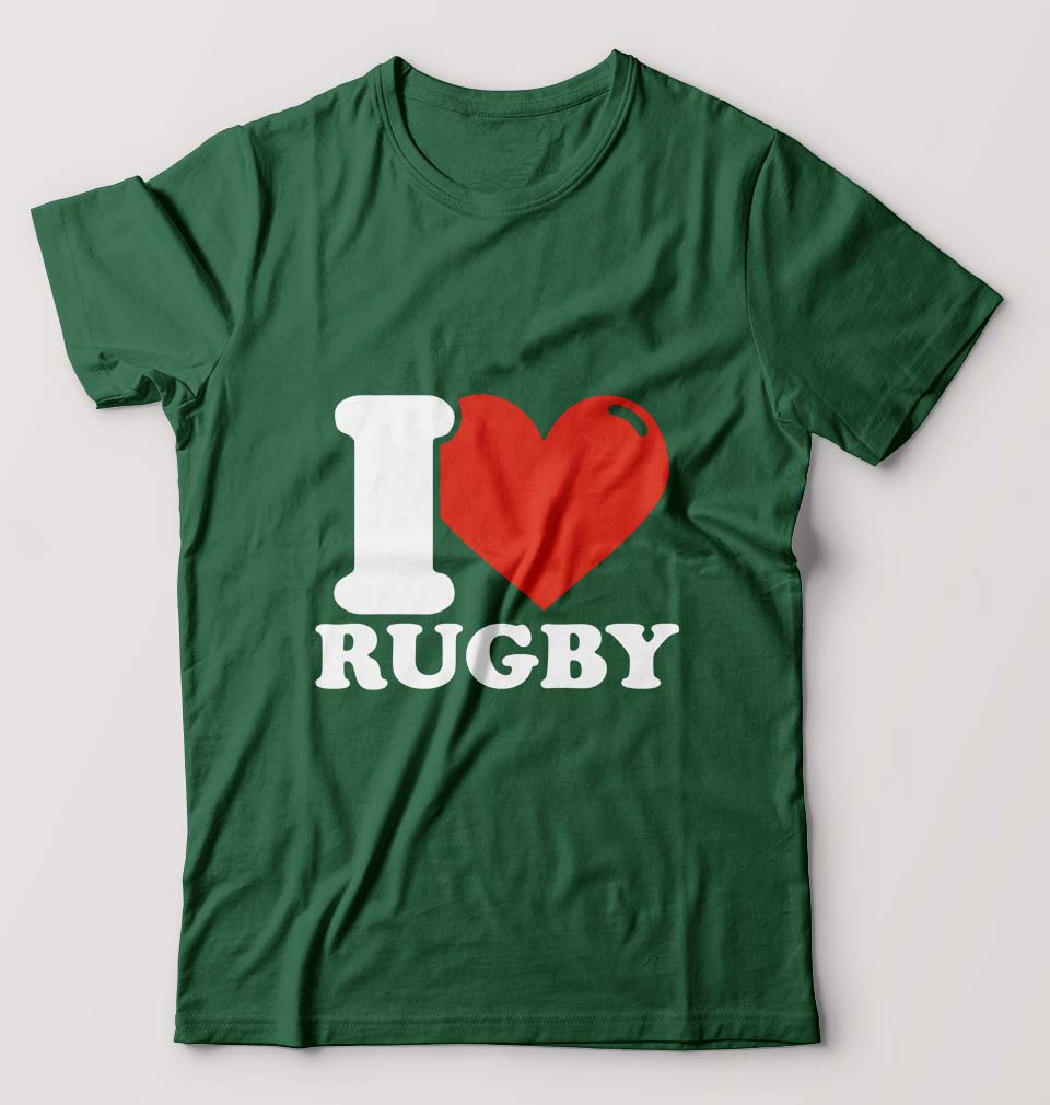 I Love Rugby T-Shirt for Men-Bottle Green-Ektarfa.online