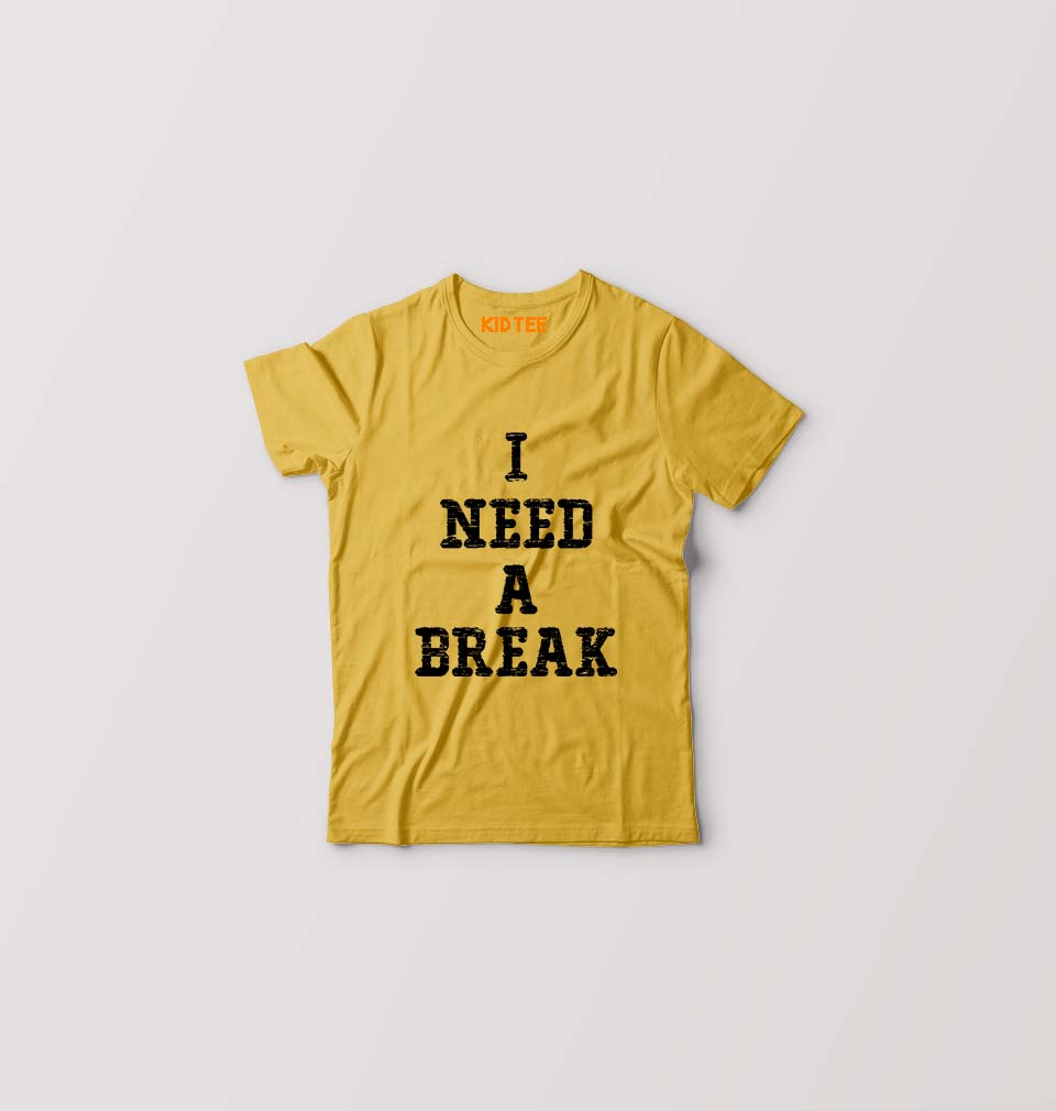 I Need A Break Kids T-Shirt for Boy/Girl-Golden Yellow-Ektarfa.online