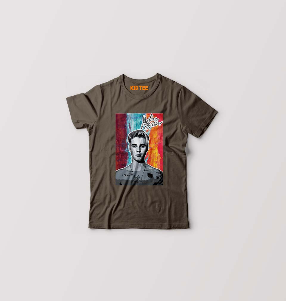 Justin Bieber Kids T-Shirt for Boy/Girl-Olive Green-Ektarfa.online