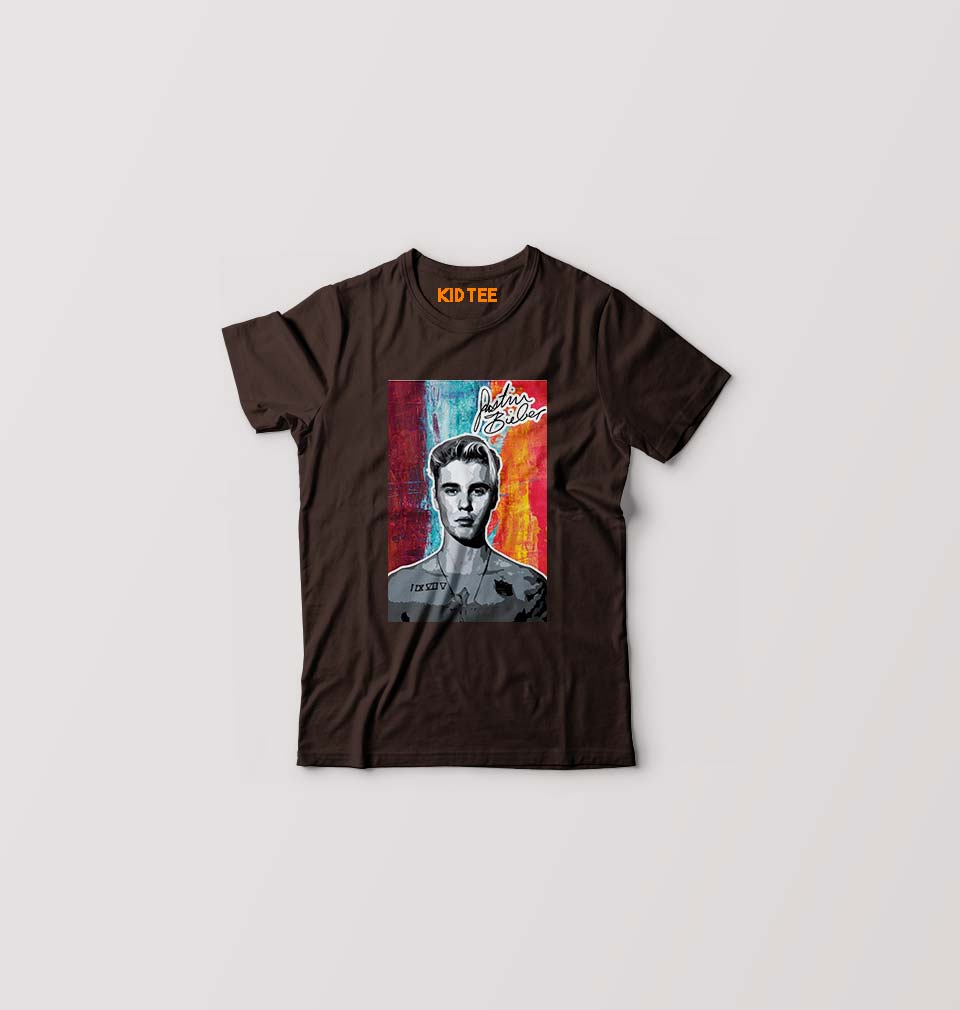 Justin Bieber Kids T-Shirt for Boy/Girl-Coffee Brown-Ektarfa.online