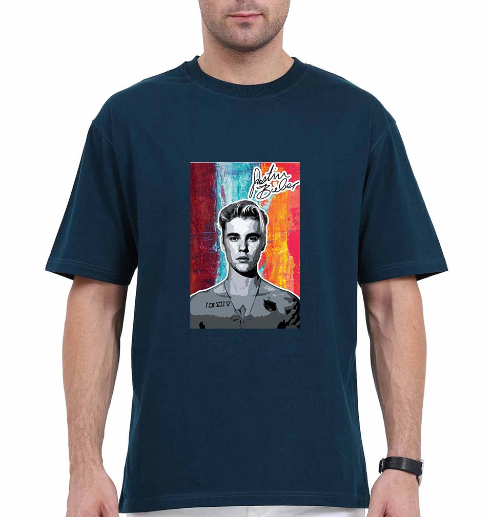 Justin Bieber Oversized T-Shirt for Men-Petrol Blue-Ektarfa.online