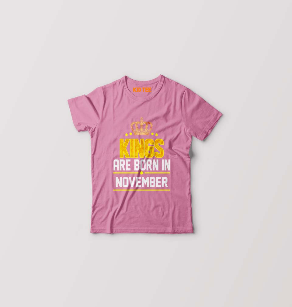 Kings Are Born In November Kids T-Shirt for Boy/Girl-Pink-Ektarfa.online