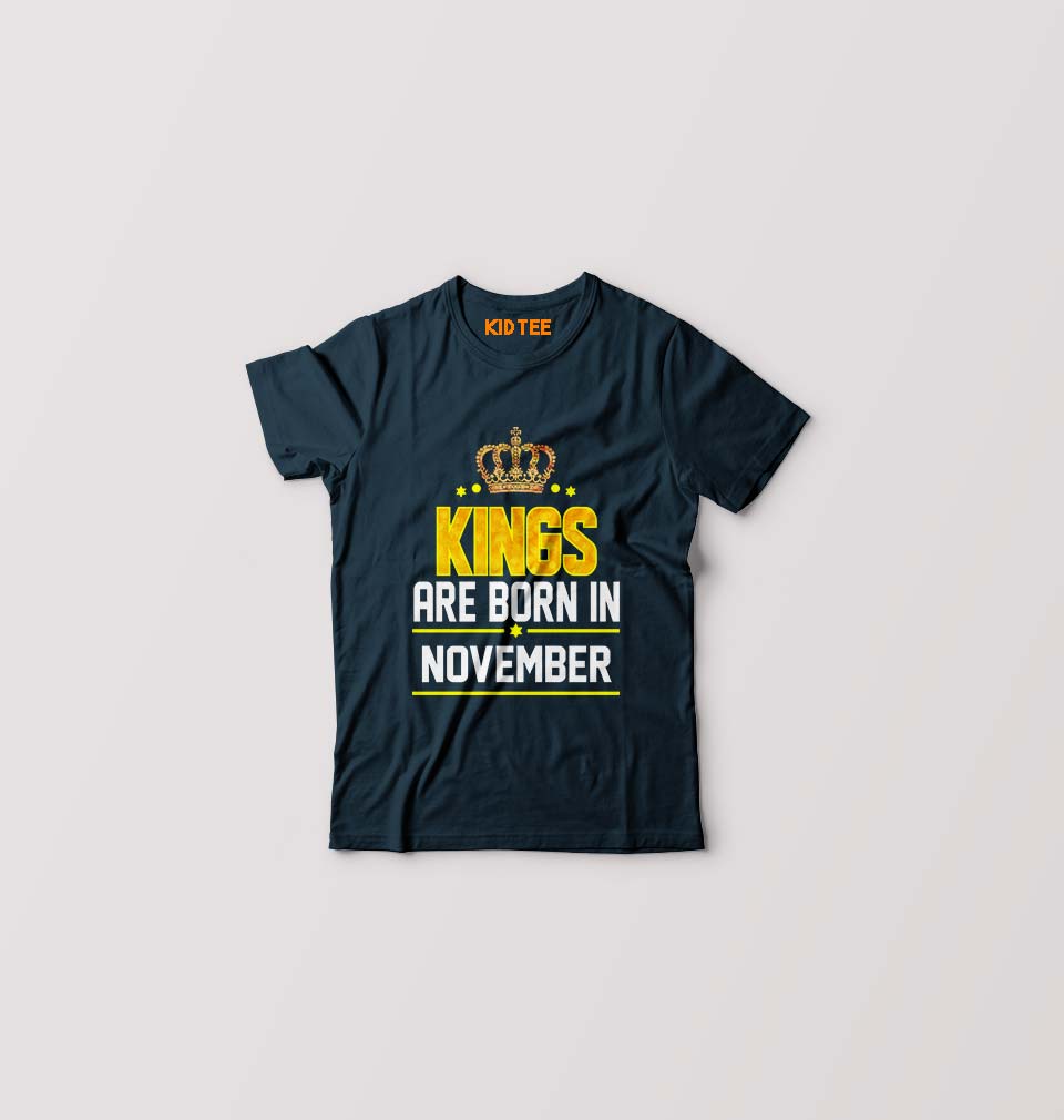 Kings Are Born In November Kids T-Shirt for Boy/Girl-Navy Blue-Ektarfa.online