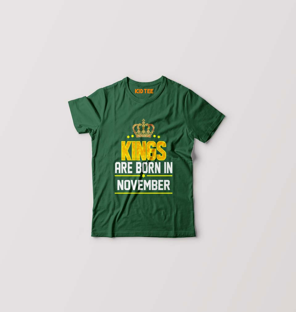 Kings Are Born In November Kids T-Shirt for Boy/Girl-Dark Green-Ektarfa.online