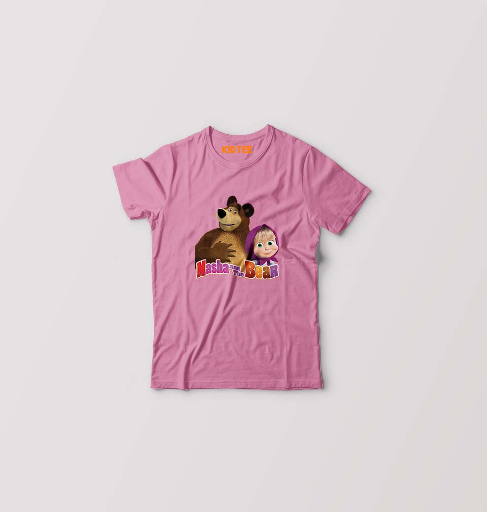 Masha and the Bear Kids T-Shirt for Boy/Girl-Pink-Ektarfa.online
