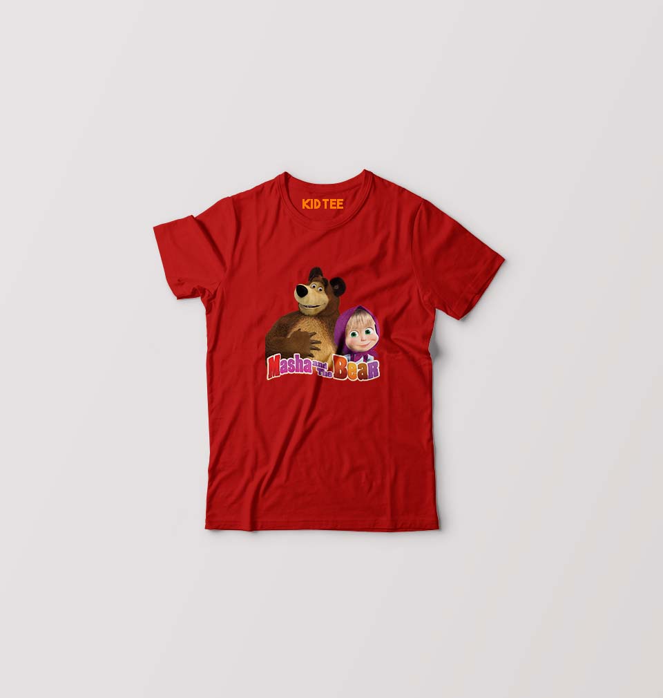 Masha and the Bear Kids T-Shirt for Boy/Girl-Red-Ektarfa.online