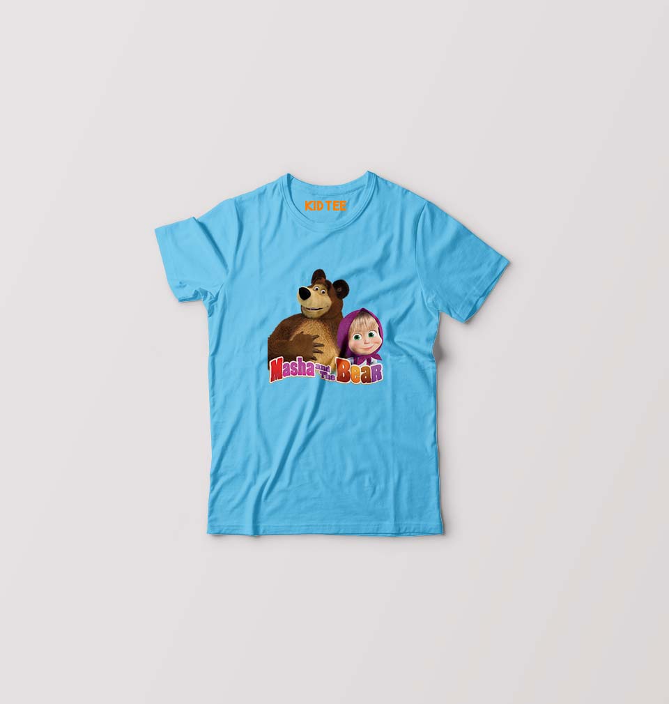 Masha and the Bear Kids T-Shirt for Boy/Girl-Light Blue-Ektarfa.online