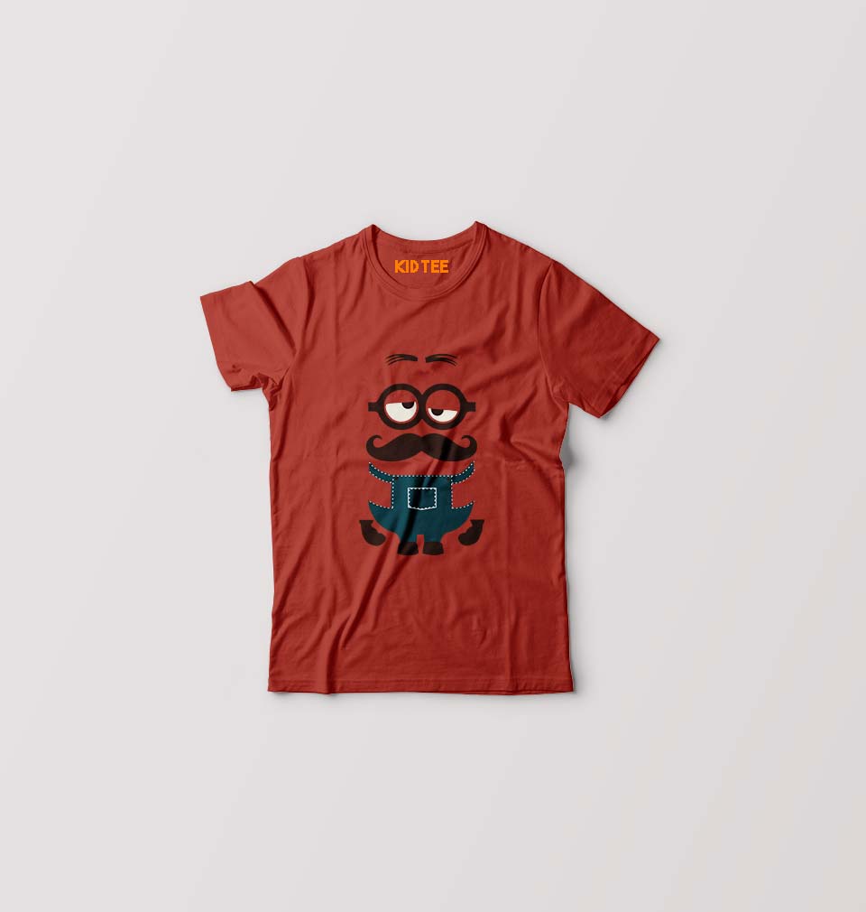 Minion Mustache Kids T-Shirt for Boy/Girl-Brick Red-Ektarfa.online
