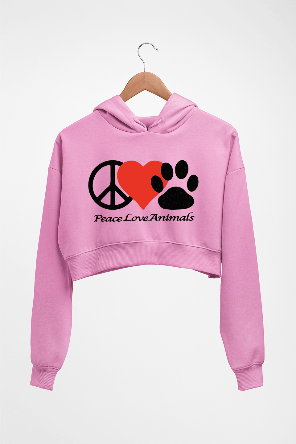 Peace Love Animals Crop HOODIE FOR WOMEN-Light Baby Pink-Ektarfa.online