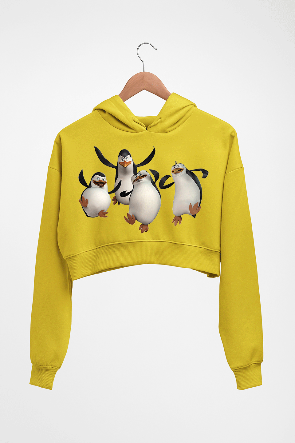 Penguins of Madagascar Crop HOODIE FOR WOMEN-Mustard Yellow-Ektarfa.online