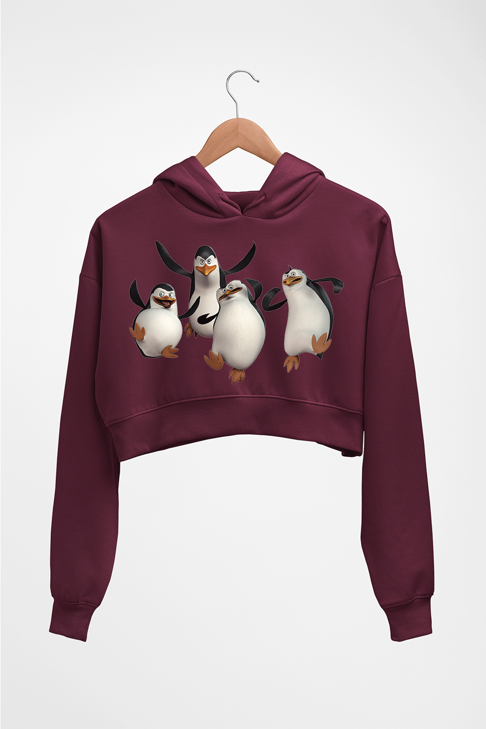 Penguins of Madagascar Crop HOODIE FOR WOMEN-Maroon-Ektarfa.online