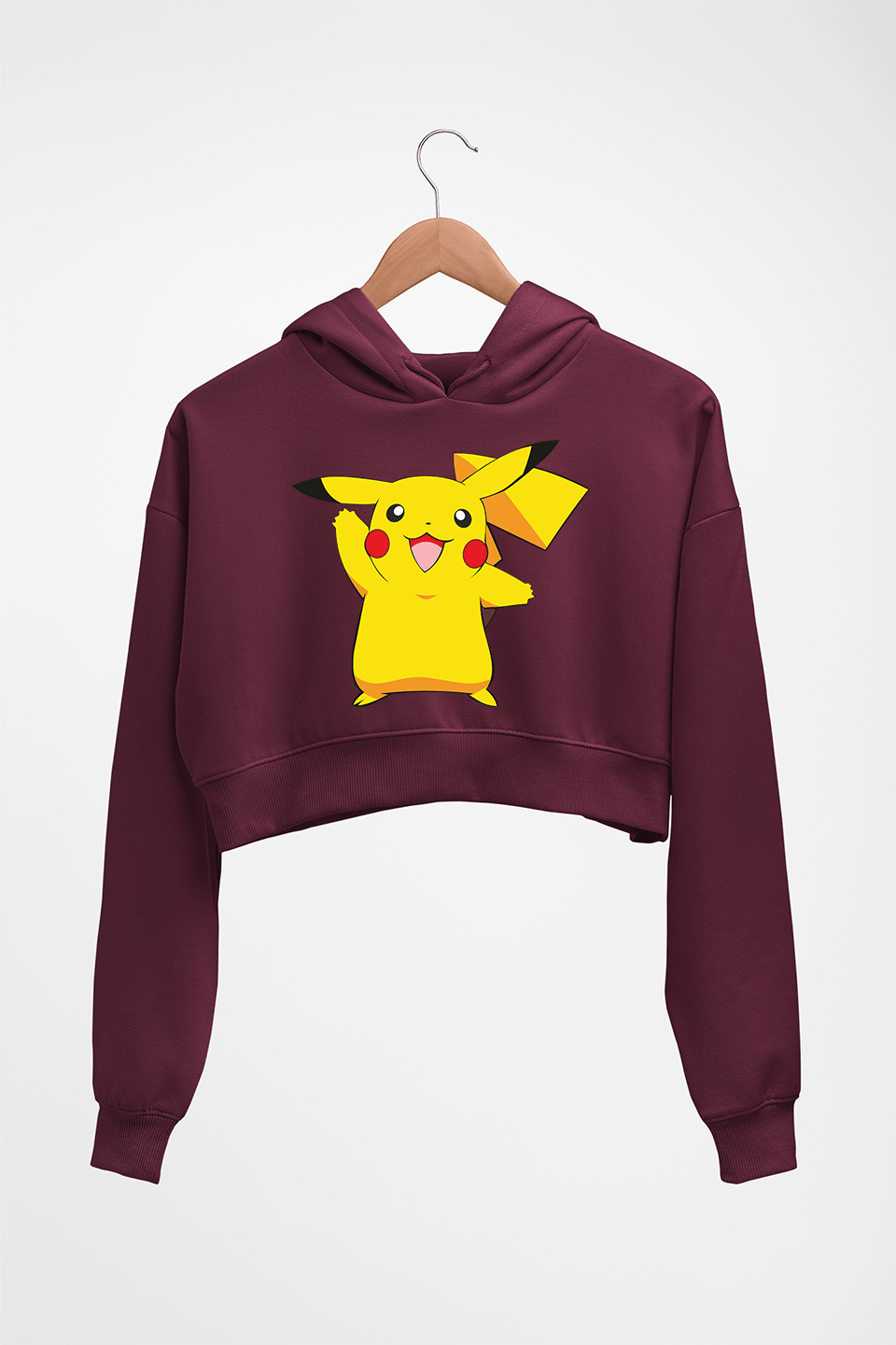 Pikachu Crop HOODIE FOR WOMEN-Maroon-Ektarfa.online