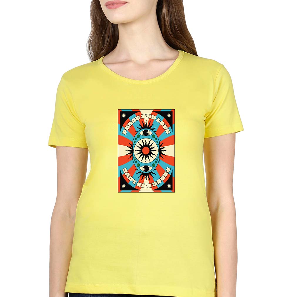 Psychedelic Peace and Love T-Shirt for Women-Yellow-Ektarfa.online