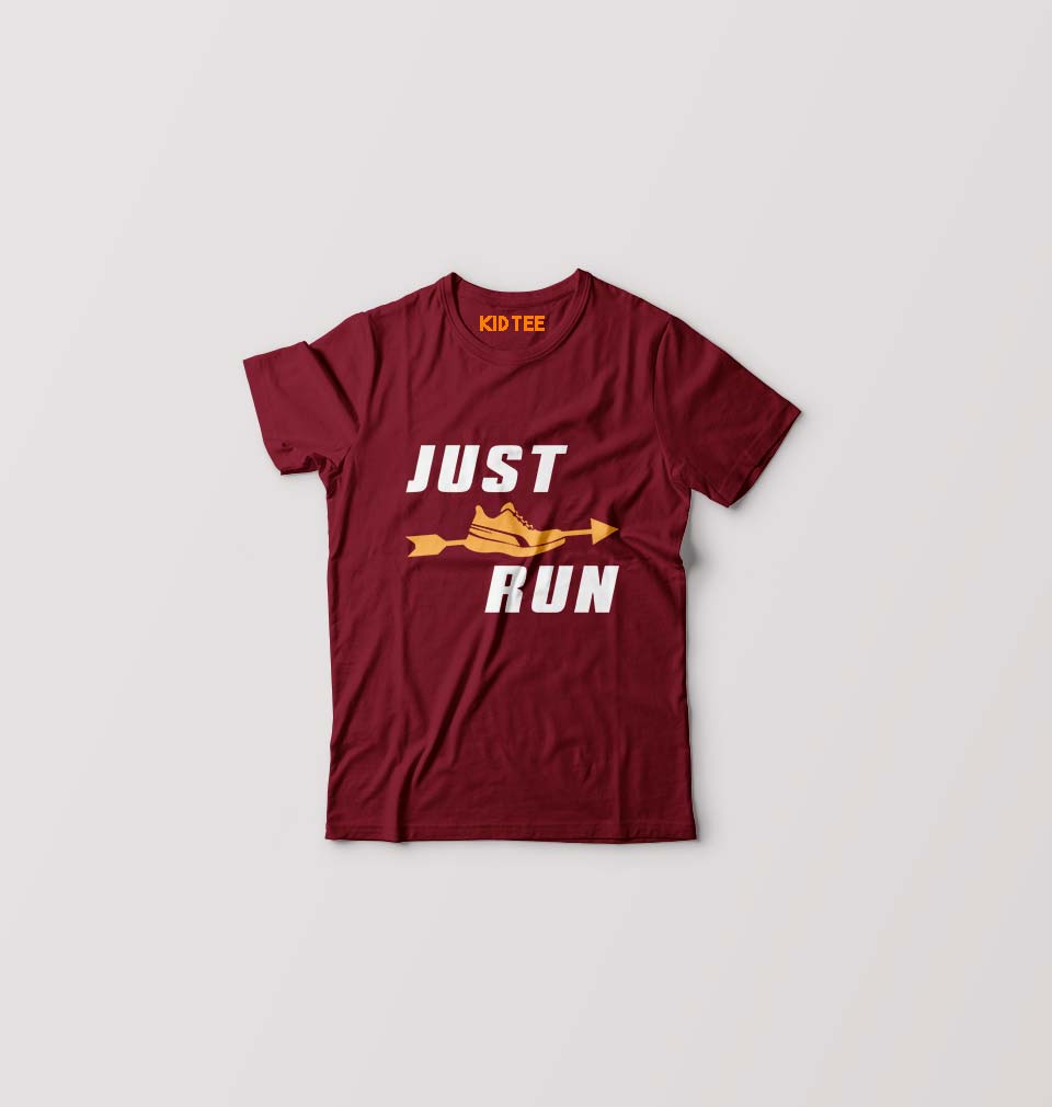 Runner Running Kids T-Shirt for Boy/Girl-Maroon-Ektarfa.online