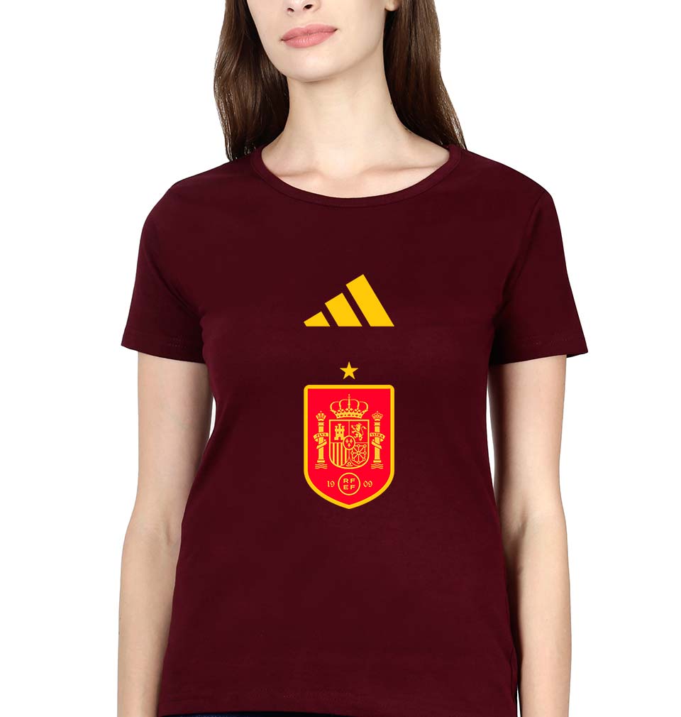 Spain Football T-Shirt for Women-Maroon-Ektarfa.online