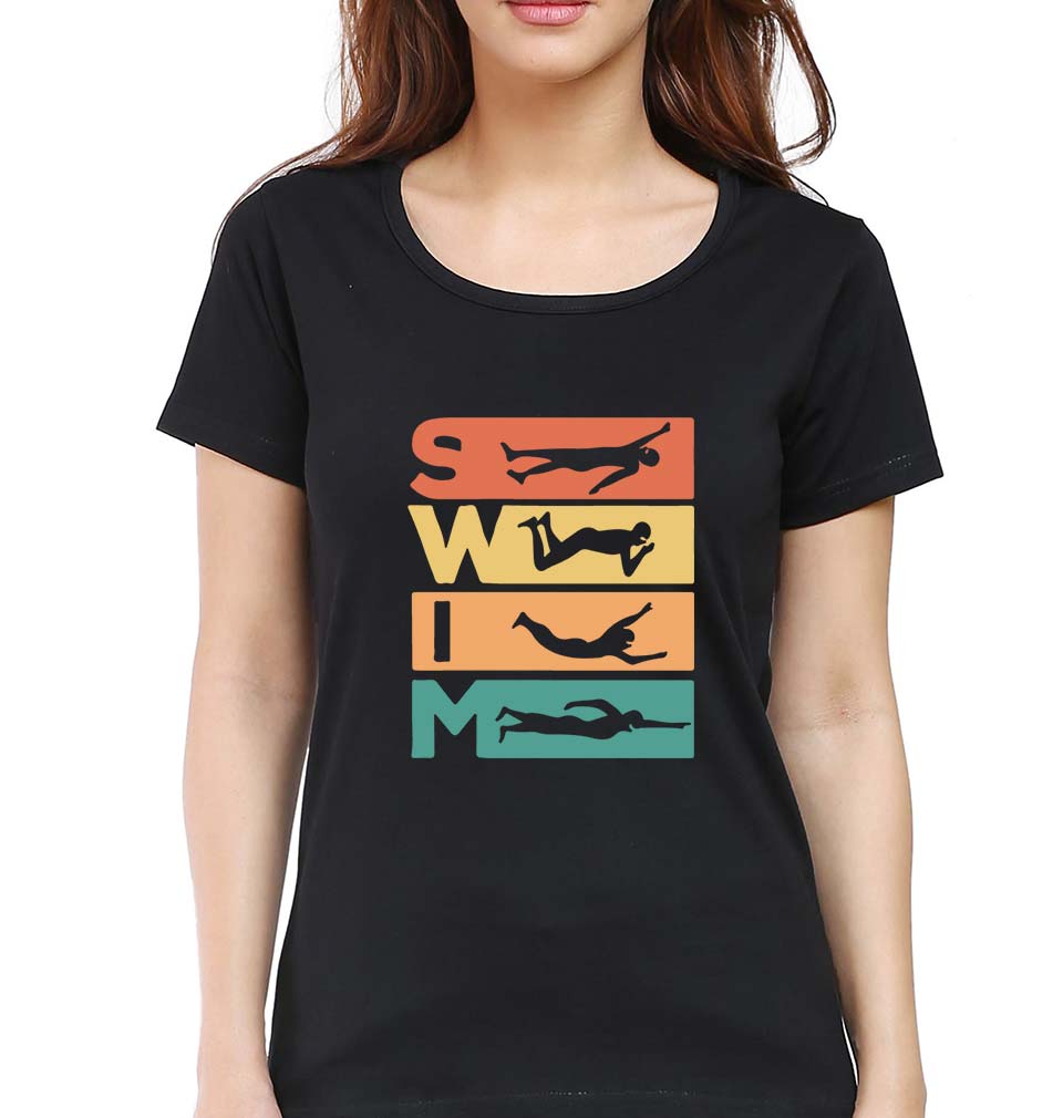 • Load image into Gallery viewer, Swimming T-Shirt for Women-Black-Ektarfa.online
