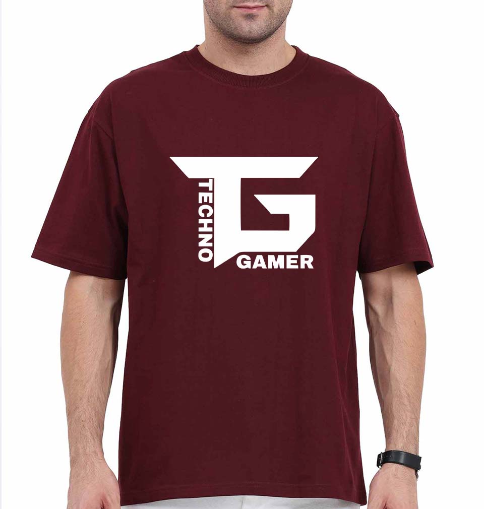 Techno Gamer Oversized T-Shirt for Men-Maroon-Ektarfa.online
