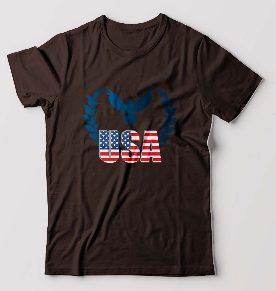 USA America T-Shirt for Men-Coffee Brown-Ektarfa.online