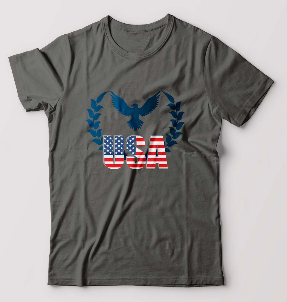 USA America T-Shirt for Men-Charcoal-Ektarfa.online