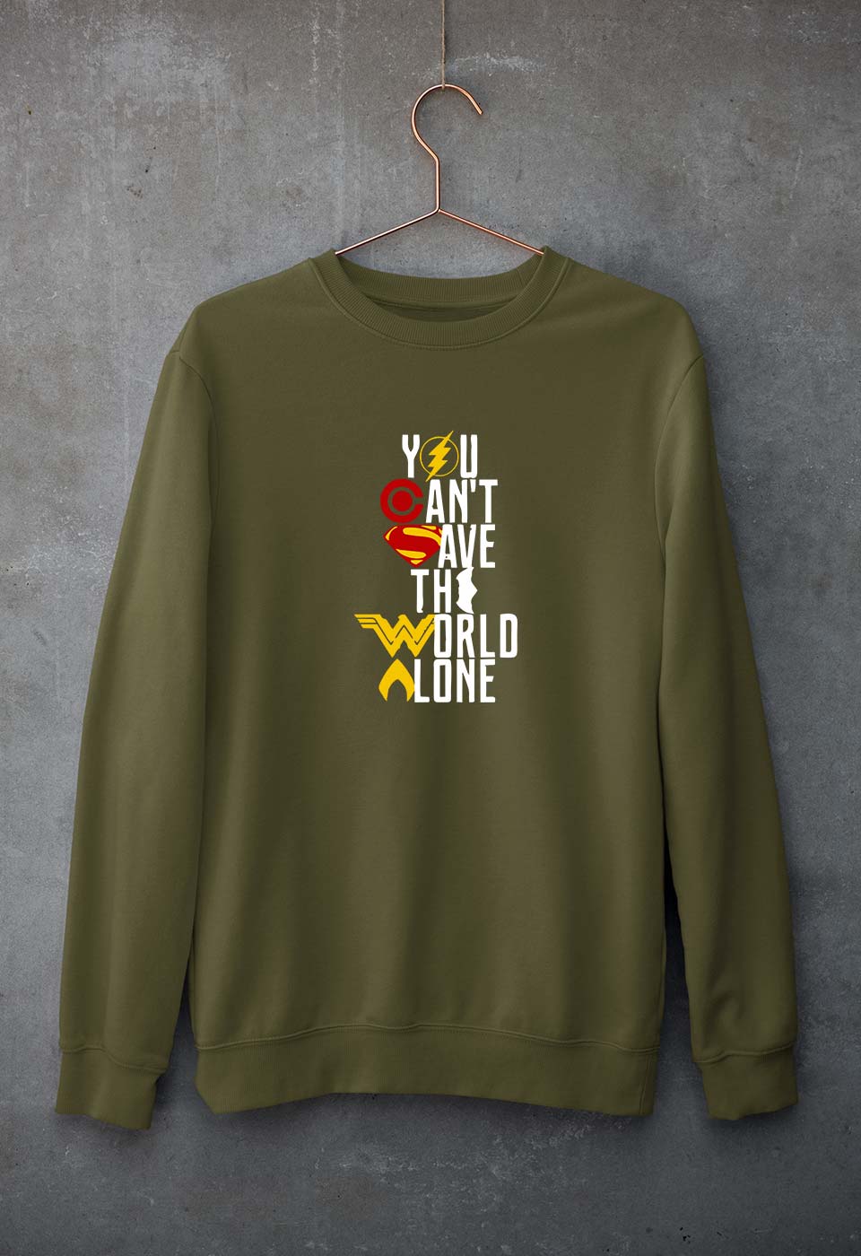 You Can't Save The World Alone Justice League Unisex Sweatshirt for Men/Women-Olive Green-Ektarfa.online