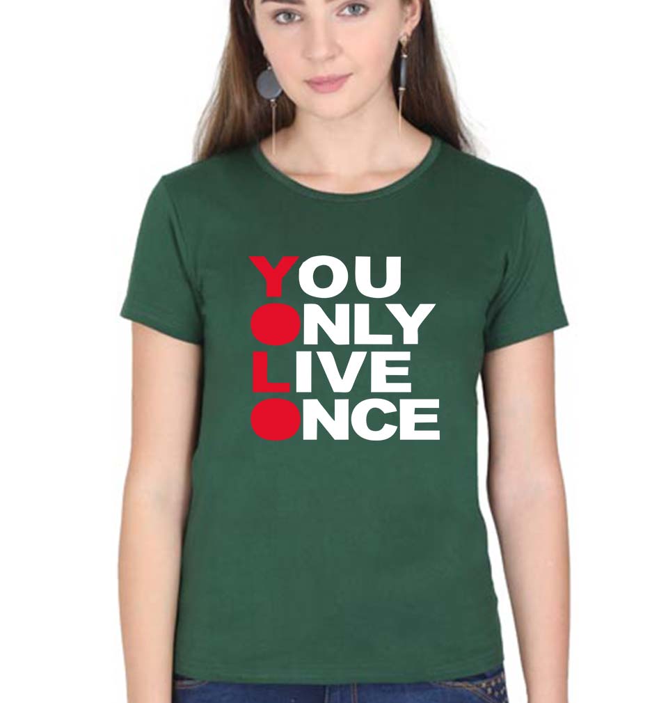 You Live Only Once(YOLO) T-Shirt for Women-Dark Green-Ektarfa.online